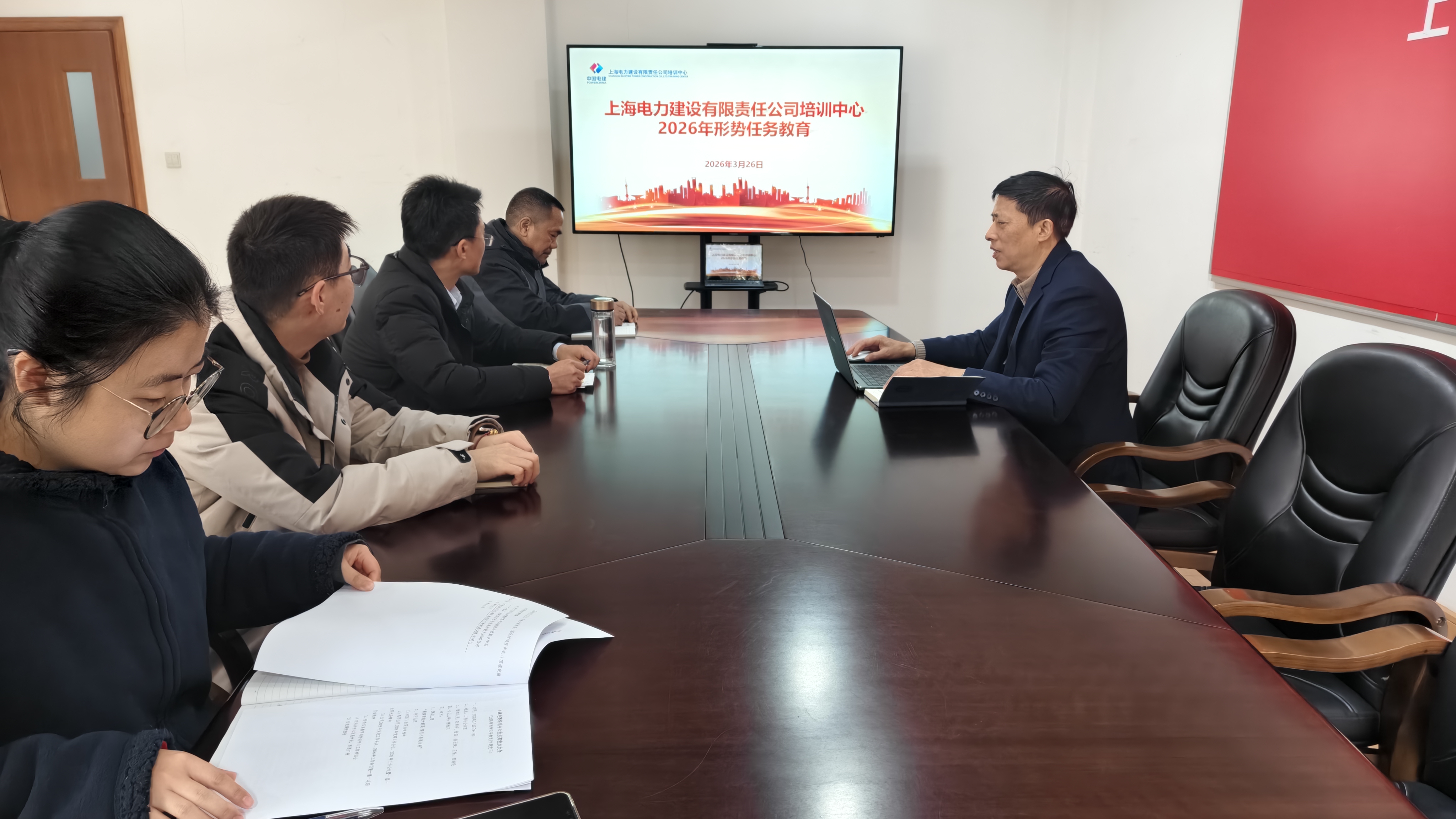 为深入贯彻上级党委工作部署,统一思想、凝聚共识,3月26日,上海电建培训中心党支部组织开展形势任务教育主题党日活动。本次学习由培训中心党支部书记、主任陆根兴主持,全体党员参加。 会议紧扣“十五五”开局之年,逐字逐句研读上级系列重要会议精神的核心部署,聚焦集团公司、上海电建公司2026年党建工作会议、党风廉政建设和反腐败工作会议暨警示教育大会精神,以及年度工作会议精神,紧密结合行业发展趋势、市场竞争格局和培训管理实际,开展全面深入、细致务实的宣讲解读,为“十五五”开局凝聚奋进力量、注入强劲动能。 此次宣讲客观分析了培训中心面临的短板不足与风险挑战,明确了发展机遇与有利条件,详细部署了全年重点工作与具体要求,既是一次思想“充电”,更是一次行动“动员”。在学习过程中,参会人员围绕学习内容展开了热烈讨论。大家结合培训中心的主责主业与个人岗位实际,积极分享学习体会,并就如何将上级决策部署转化为具体的培训教学、管理服务实践踊跃发言。 最后,培训中心党支部书记、主任陆根兴作总结发言。他对本次学习的成效和大家的积极参与给予了肯定,并就下一阶段工作提出明确要求:一是要持续深化学习,将上级会议精神内化于心、外化于行,确保思想根基牢固;二是要抓好贯彻落实,将学习成果与培训中心年度重点任务紧密结合,特别是在提升培训质量、培育新质生产力相关技能人才方面拿出实招;三是要加强自身建设,全体党员职工要以更高的标准要求自己,严守纪律规矩,提升专业能力,共同营造风清气正、干事创业的良好氛围,为圆满完成年度各项目标任务、助力公司战略转型发展筑牢坚实的思想与能力基础。 |